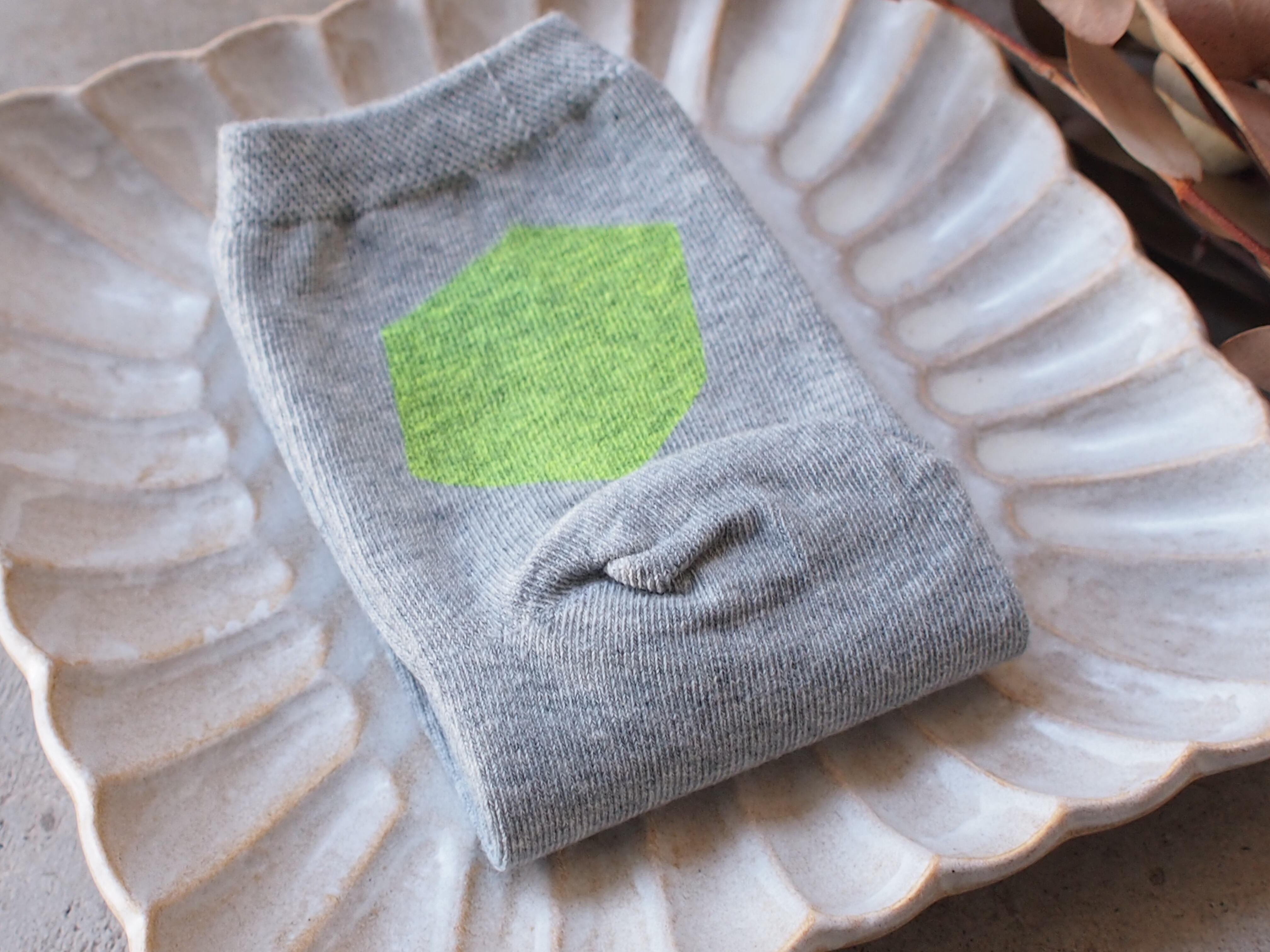 手刷りで仕上げている くつした です。